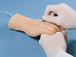 The back of the hand is the most common site for injection training. With this model you can teach the common procedure for IV drips.